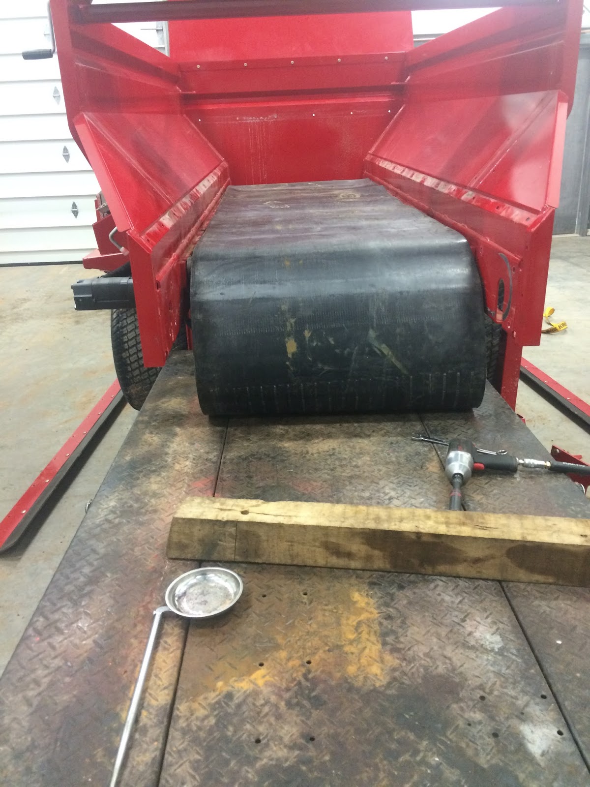 Our new material handler developed a tear . I did a temporary stitch job to make it last till a new belt came . Surprisingly it lasted a few weeks getting the remaining fall work and new tee decks near completion . Great machine and saved the crew loads of man hours .